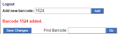 1. To add a barcode, enter the barcode # in the Add new barcode text box.