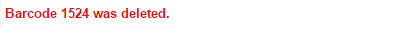2. Select the Delete button next to the barcode you wish to delete. You should see the following message, when the barcode has been deleted:deleted